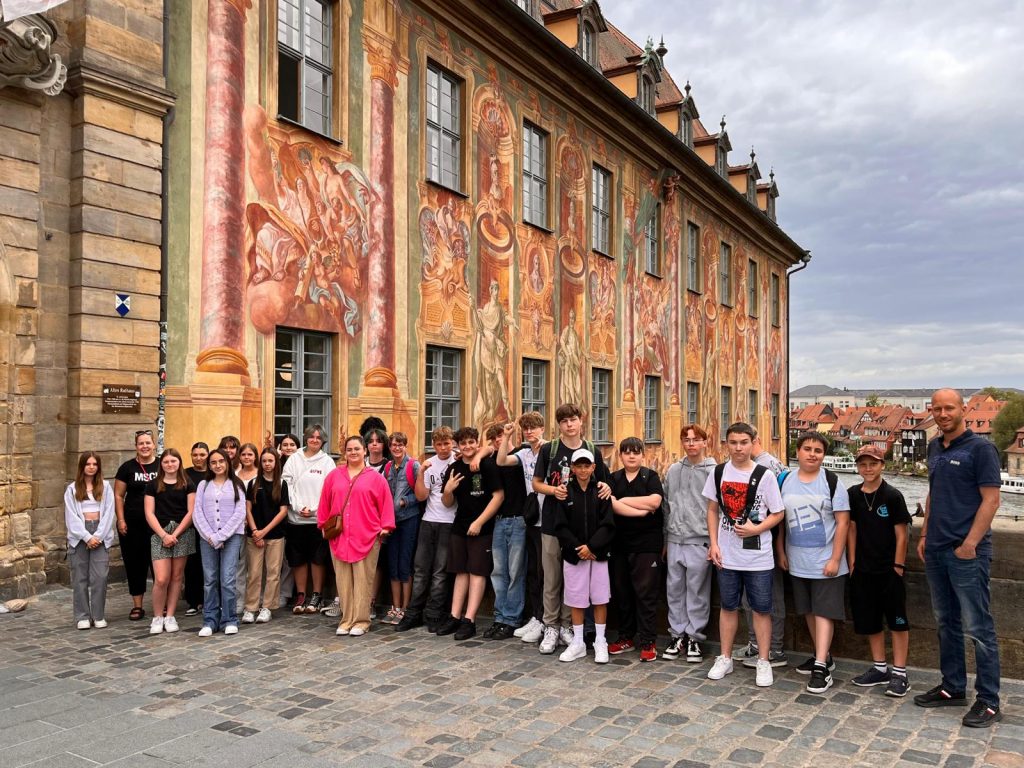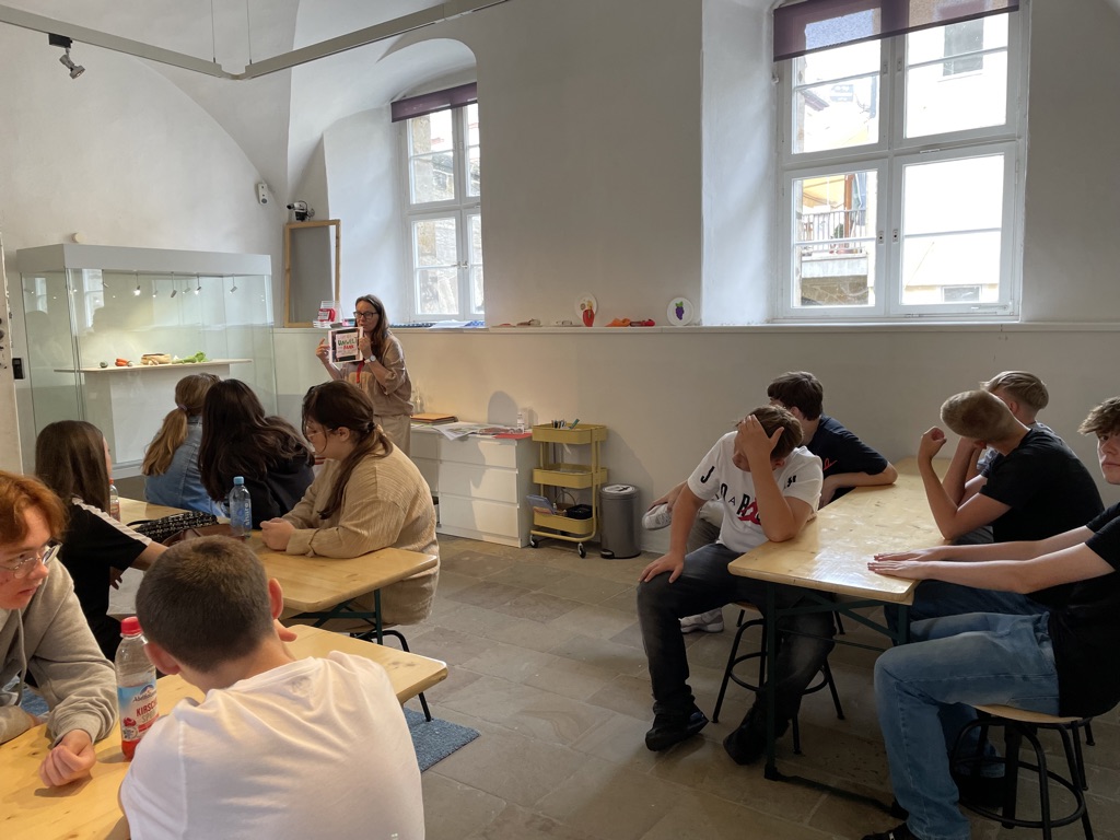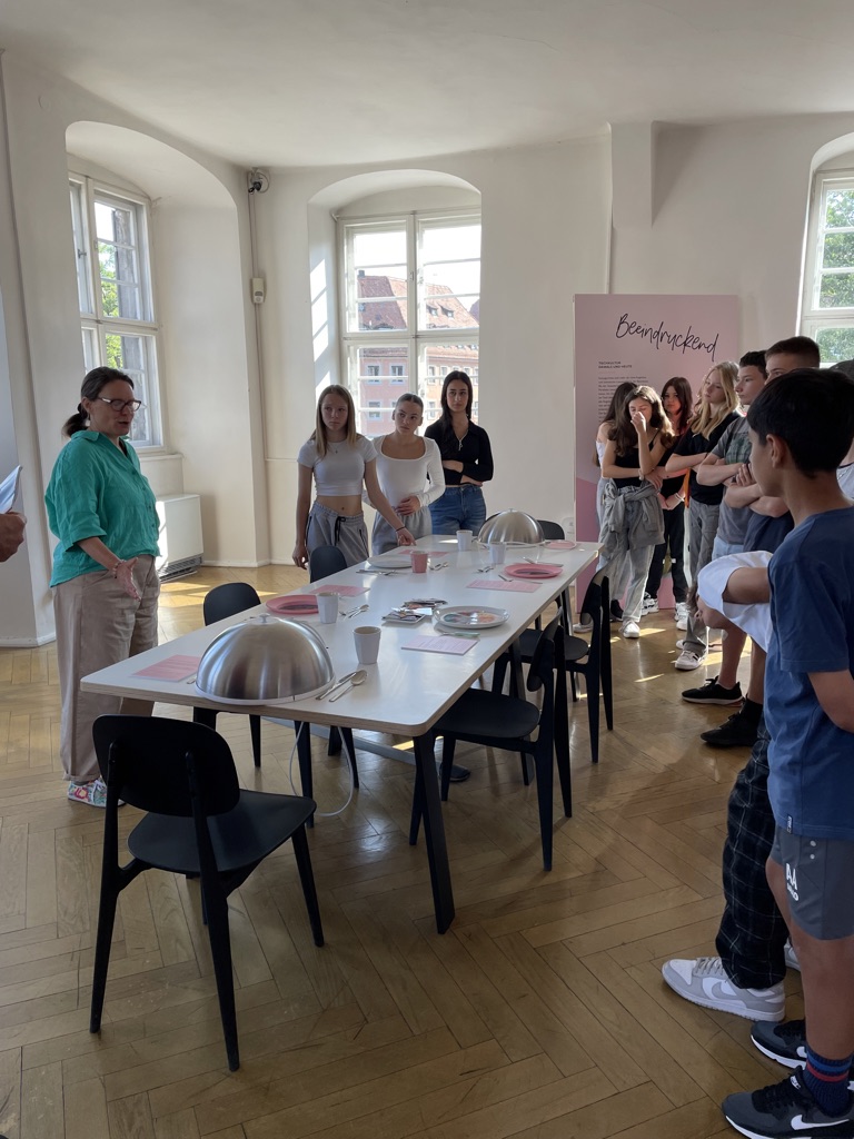 Im Rahmen der Alltagskompetenzwoche besuchten die 7. Klassen im Rahmen des Faches Ernährung und Gesundheit die Ausstellung „Fake Food. Essen zwischen Schein und Sein“ im Alten Rathaus. Bei einem gemeinsamen Rundgang durch die Ausstellung konnten die Schüler*innen die Hintergründe und die Einflüsse des Ernährungsstils auf unseren Planeten erkunden. Dabei wurden sie motiviert, jenseits vom Tellerrand zu denken, über tagtägliche Handlungen nachzudenken und effektive Alternativen zu finden. Im Anschluss an die Führung nahmen die Jugendlichen an der Mitmachwerkstatt „Climate Action” teil. Hier gestalteten sie in Kleingruppen Plakate und betrachteten unter anderem folgende Fragen genauer: Welche Auswirkungen hat unsere Ernährung auf die Umwelt? Und wie war es im 18. Jahrhundert? Gab es bereits ein Nachhaltigkeitskonzept? Was können wir tun, um unseren Planeten zu retten? Vielen Dank für diesen abwechslungs- und lehrreichen Schultag!