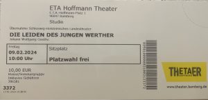 Am Freitag, den 9. Februar 2024, besuchten die 8. Klassen im Rahmen des Faches Deutsch die Inszenierung von Johann Wolfgang von Goethes “Die Leiden des jungen Werther” im E.T.A.-Hofmann-Theater Bamberg. Die Epoche des Sturm und Drangs und das Werk wurden zuvor im Deutschunterricht behandelt. Uns als Schule ist es wichtig, das Erlernte für unsere Schülerinnen und Schüler auch einmal an einem außerschulischen Lernort anschaulicher und greifbarer zu machen. Für viele war es der erste größere Theaterbesuch und die Jugendlichen konnten durch die grandiose Schauspielleistung von Marek Egert die Sprache und den Inhalt des Stücks viel besser verstehen.