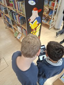 Zu Beginn wurden die Schülerinnen und Schüler freundlich begrüßt und in die Nutzung der App „Actionbound“ eingeführt. Mit dieser App konnten sie in Kleingruppen eine digitale Rallye durch die Bücherei machen. Dabei mussten sie verschiedene Aufgaben lösen, Fragen beantworten und Stationen finden. Die Rallye führte sie durch alle wichtigen Bereiche der Bücherei, und ganz nebenbei erfuhren sie viel über die Ausleihe, die Ordnung der Bücher und die verschiedenen Medien, die dort zur Verfügung stehen.