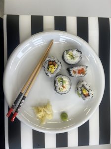 Zum Einsatz kamen erstmals der neue Reiskocher sowie die beiden Sushi-Kits, die vom Preisgeld des Medienpreises des MB angeschafft wurden. Die neuen Arbeitsmaterialien erleichterten die Zubereitung deutlich und trugen zu dem gelungenen Ergebnis bei.